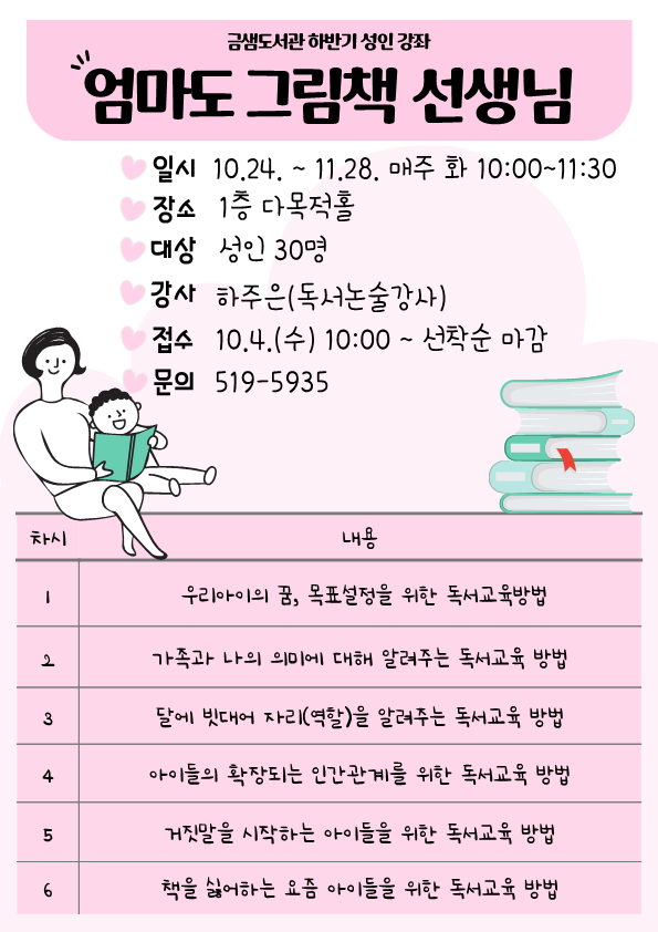 | [금샘도서관 하반기 성인강좌] 엄마도 그림책 선생님 | |