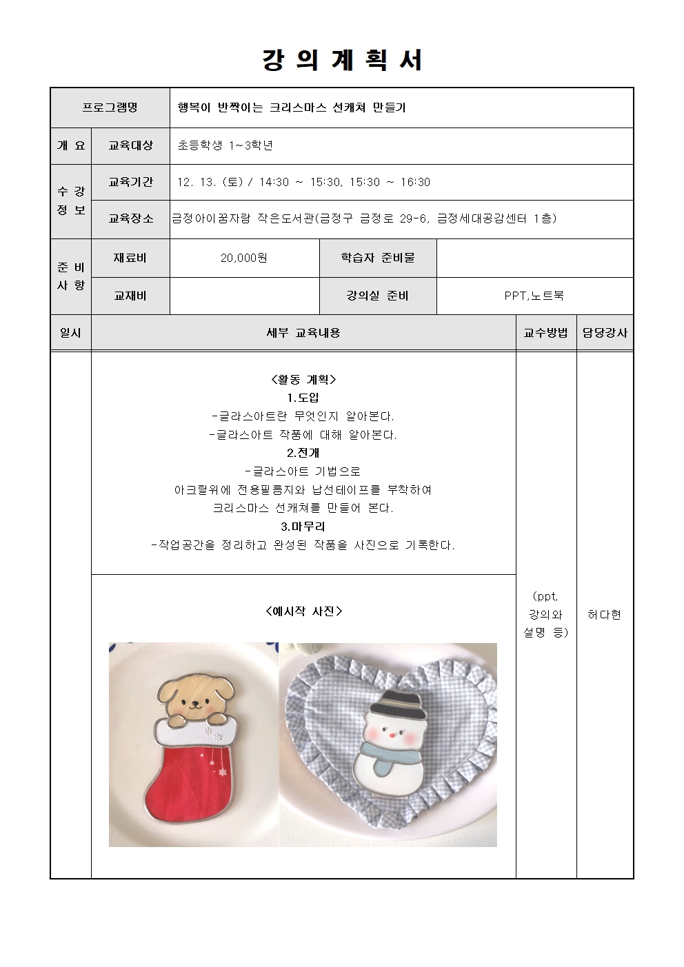 | [금정아이꿈자람] 행복이 반짝이는 크리스마스 선캐쳐 만들기 14:30 타임 (미리 메리 크리스마스) | |